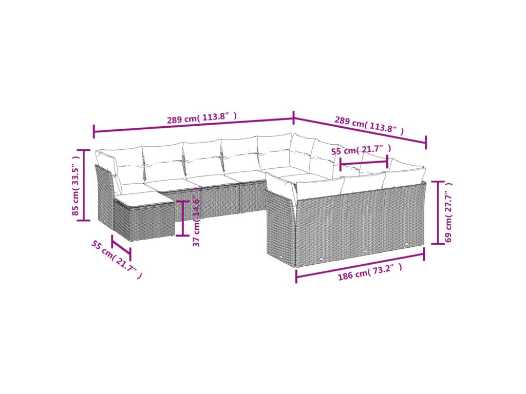 12dílná zahradní sedací souprava s poduškami šedá polyratan 3250469