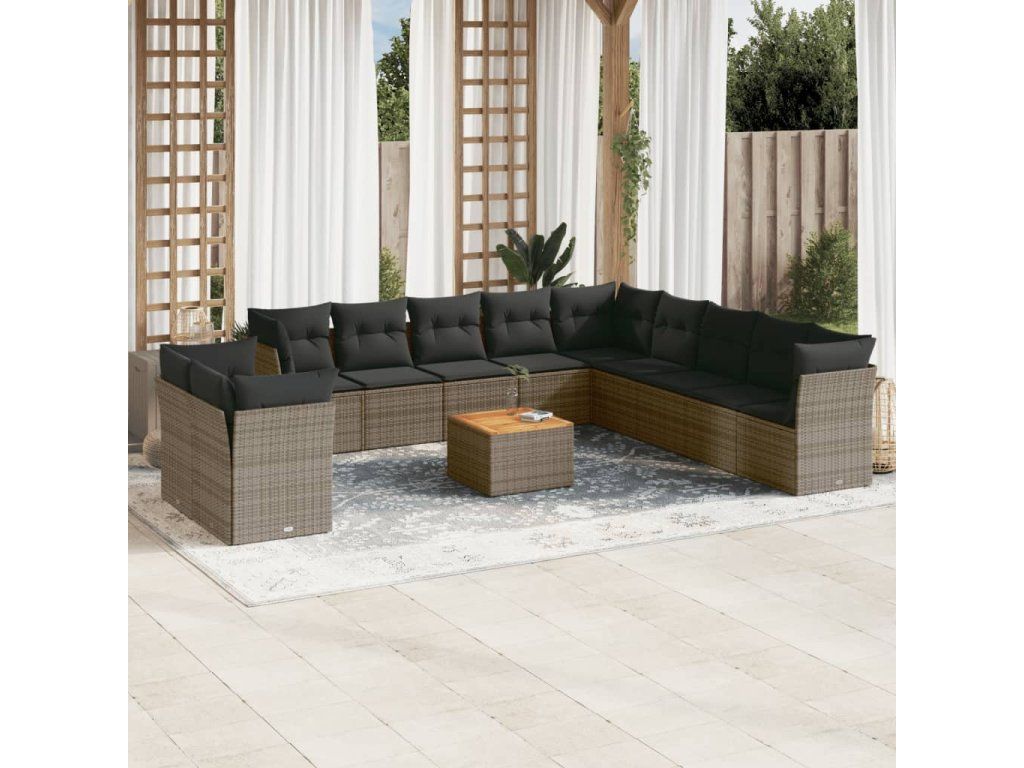12dílná zahradní sedací souprava s poduškami šedá polyratan 3256060