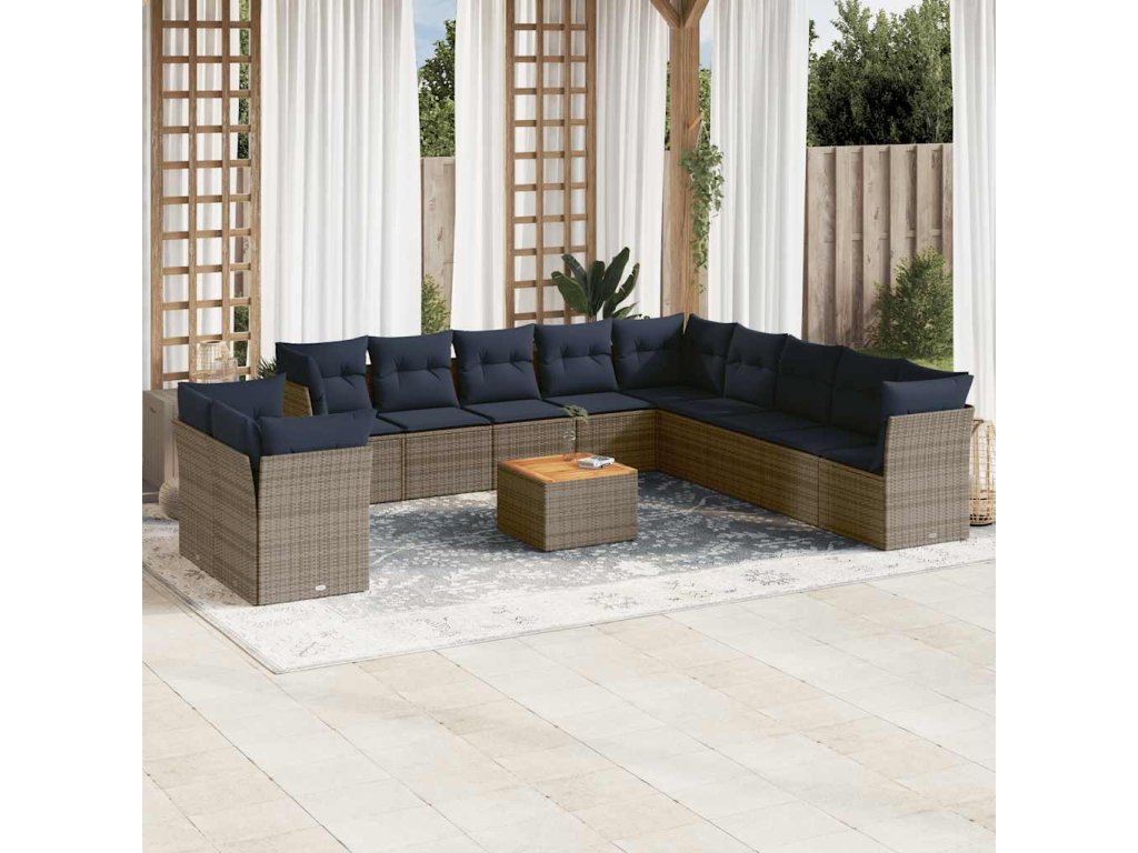 12dílná zahradní sedací souprava s poduškami šedá polyratan 3256061