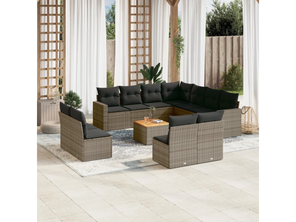 12dílná zahradní sedací souprava s poduškami šedá polyratan 3256515