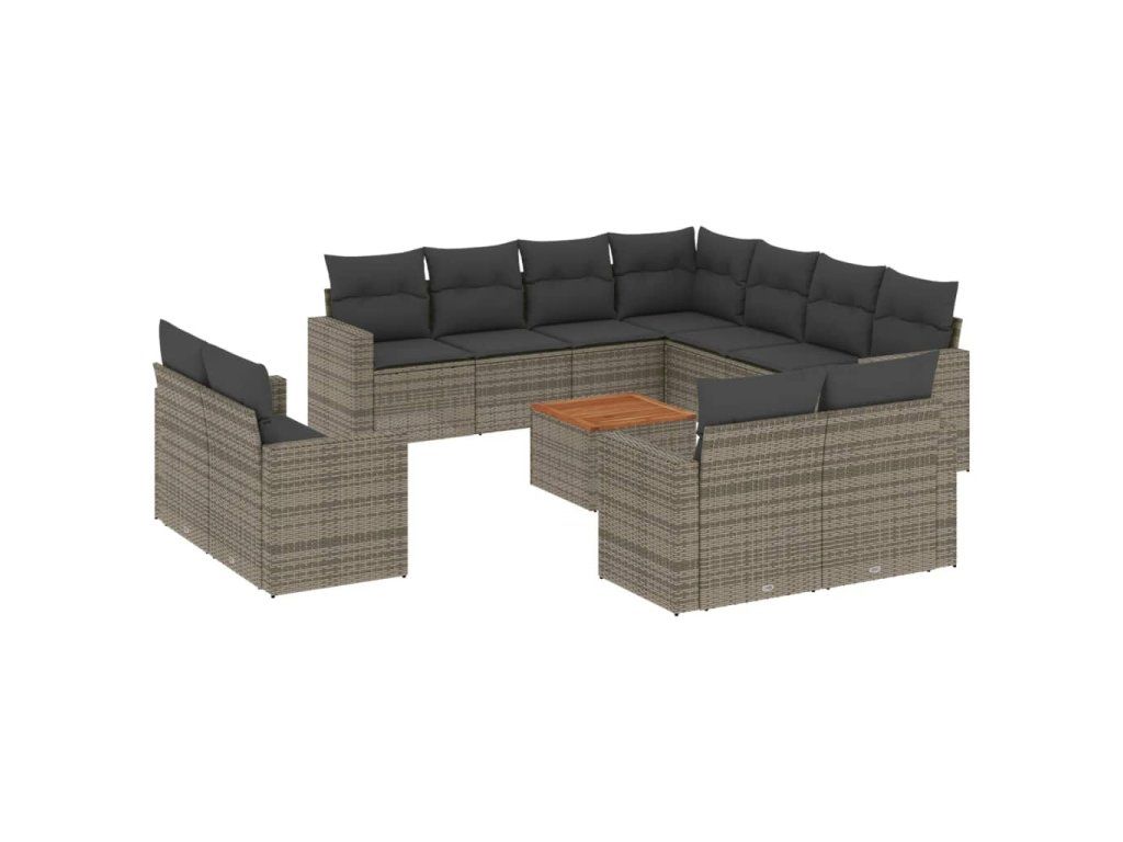 12dílná zahradní sedací souprava s poduškami šedá polyratan 3256718