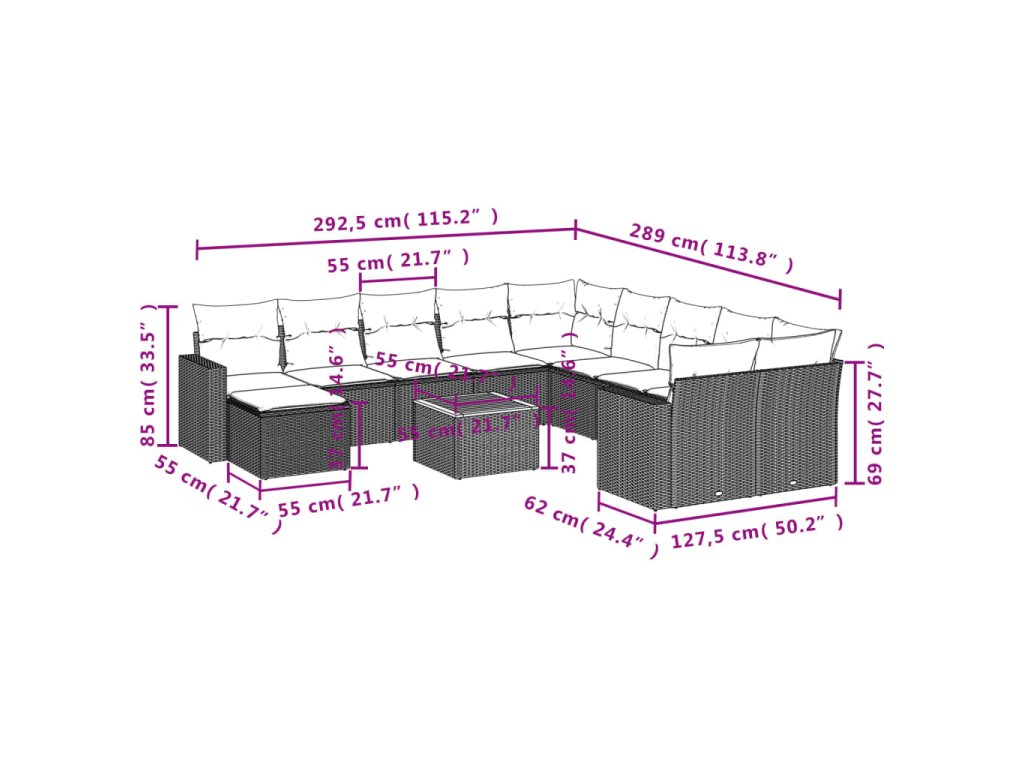 12dílná zahradní sedací souprava s poduškami šedá polyratan 3256753