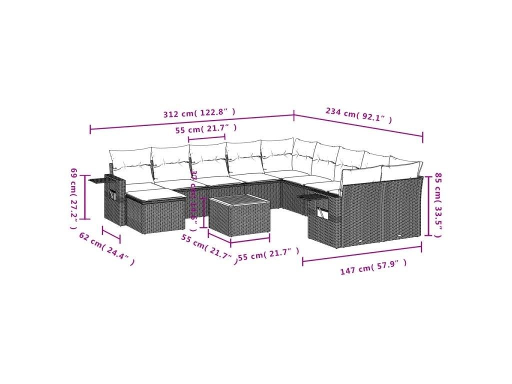 12dílná zahradní sedací souprava s poduškami šedá polyratan 3257194
