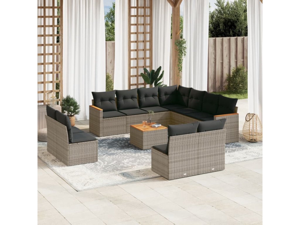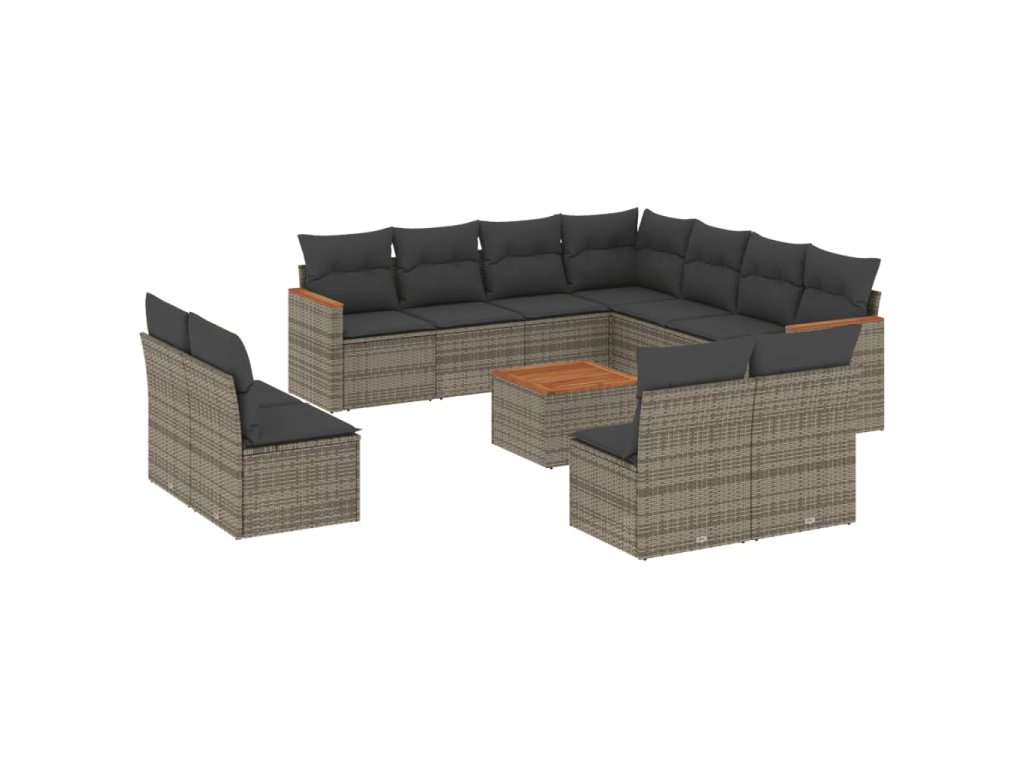 12dílná zahradní sedací souprava s poduškami šedá polyratan 3258497
