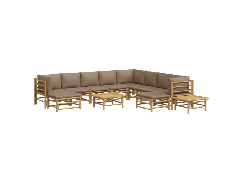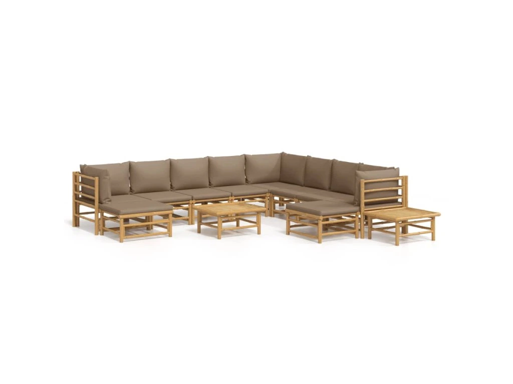 12dílná zahradní sedací souprava s taupe poduškami bambus 3155131