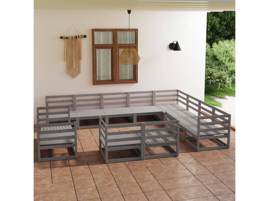 12dílná zahradní sedací souprava šedá masivní borovice 3075956