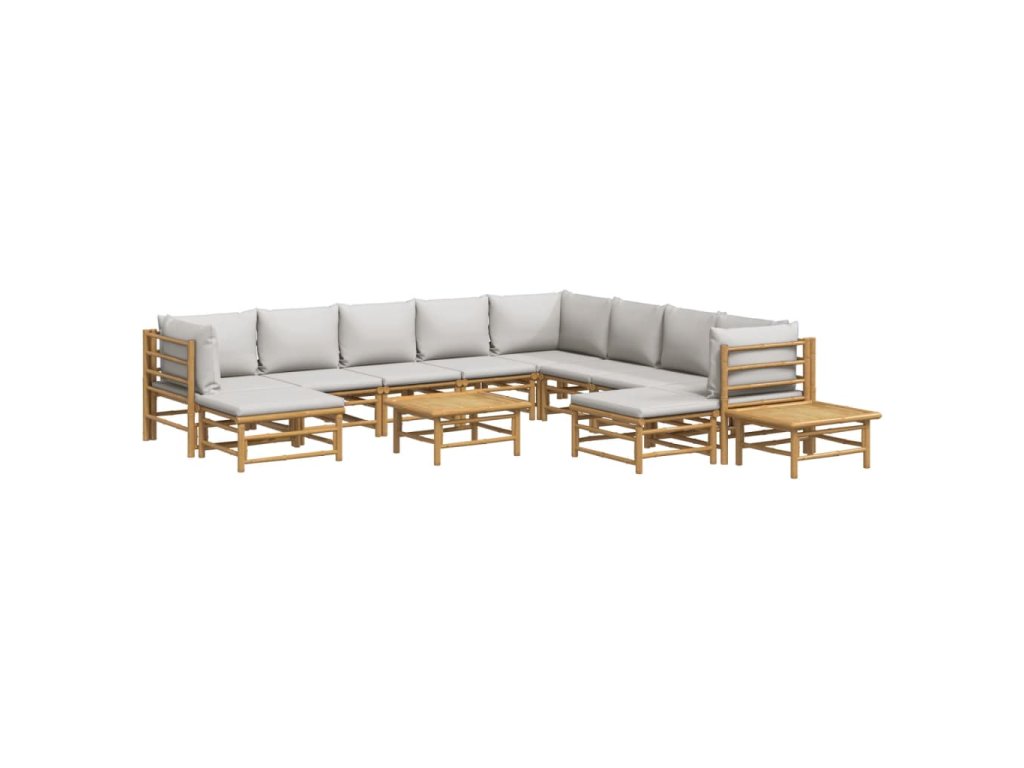 12dílná zahradní sedací souprava světle šedé podušky bambus 3155099