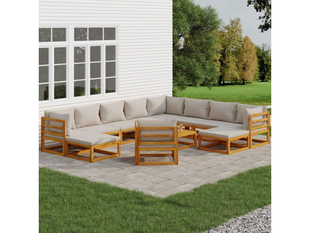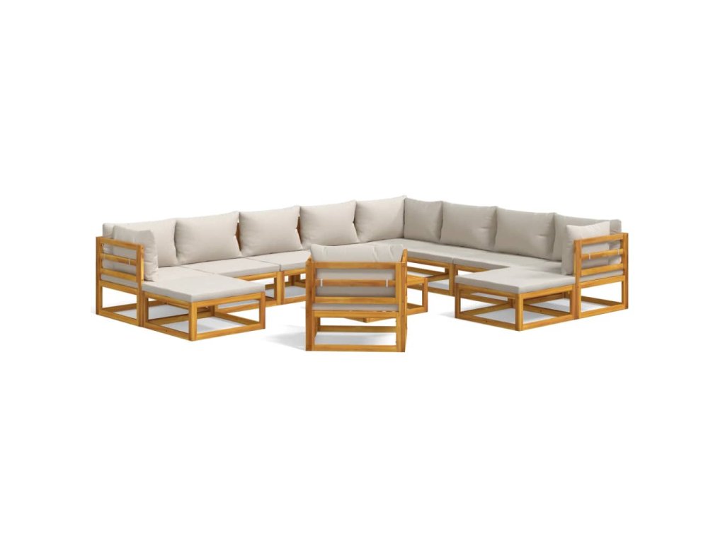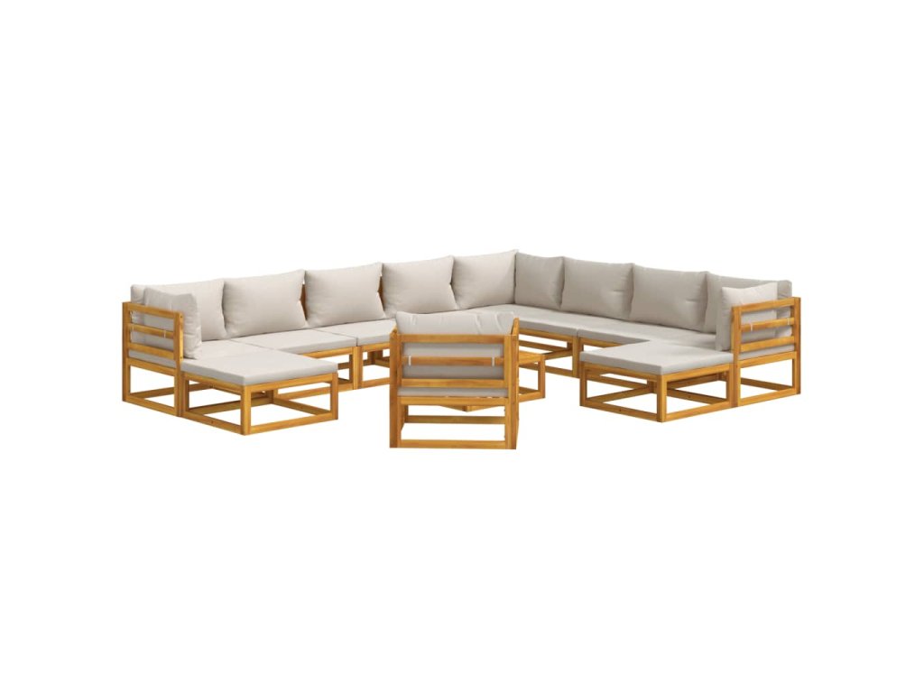 12dílná zahradní sedací souprava světle šedé podušky masiv 3155294