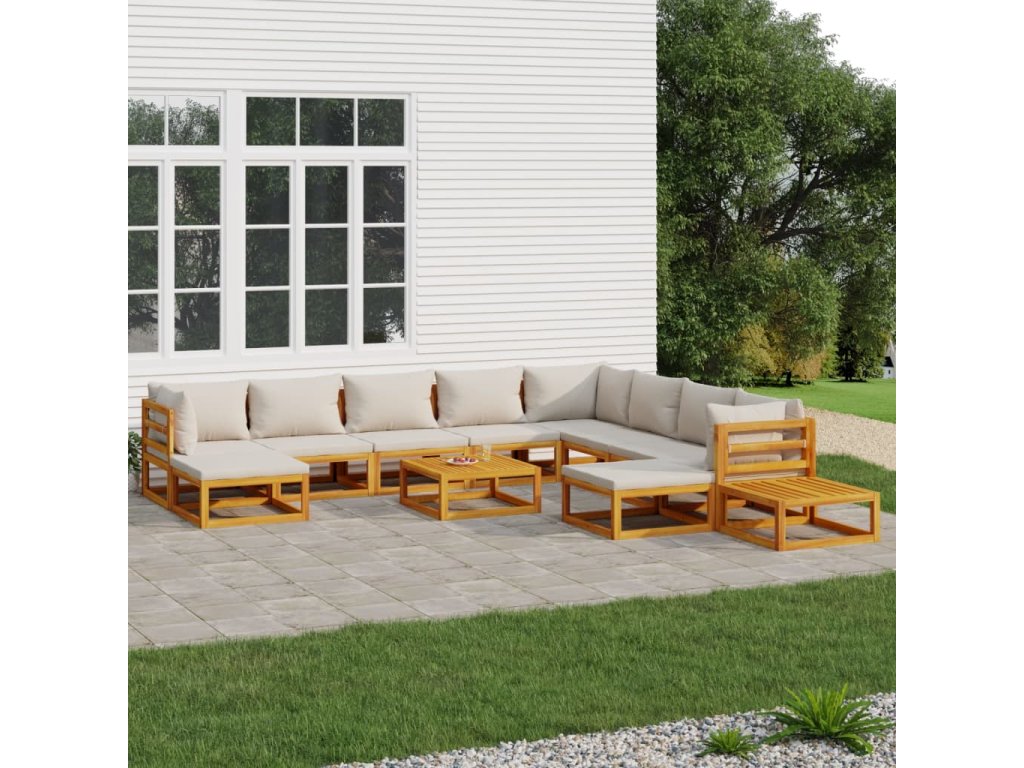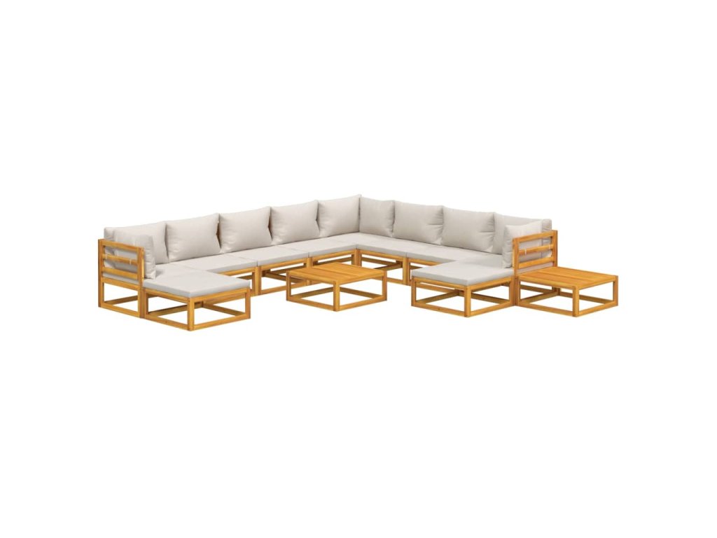 12dílná zahradní sedací souprava světle šedé podušky masiv 3155295