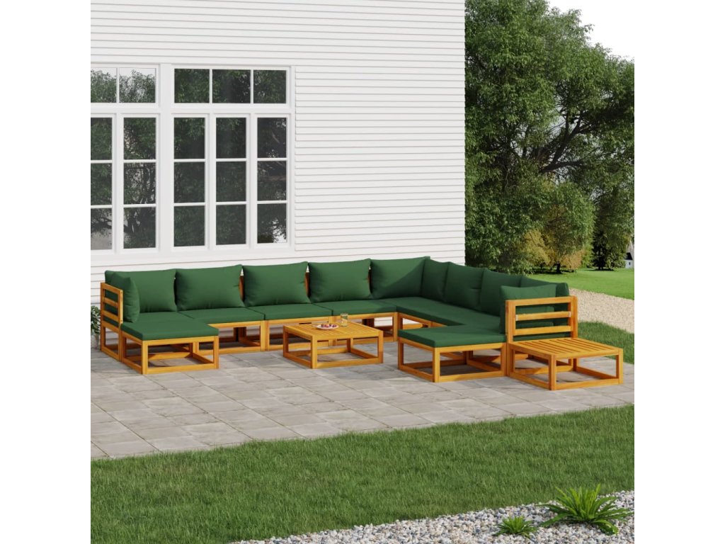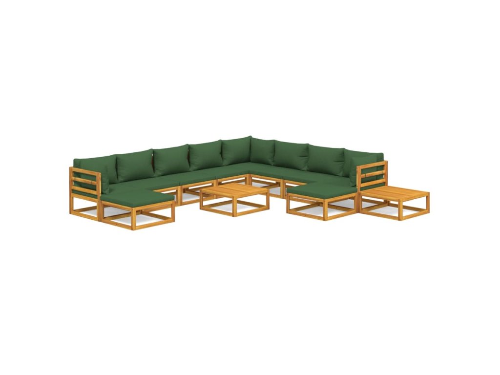 12dílná zahradní sedací souprava zelené podušky masivní dřevo 3155326