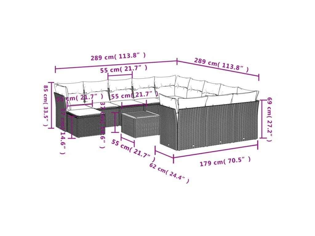 Tato zahradní sedací souprava je dokonalým doplňkem vaší zahrady, terasy nebo dvorku a poskytne vám pohodlné a příjemné místo, kde si můžete povídat s rodinou a přáteli nebo jen tak odpočívat a užívat si pobyt venku.