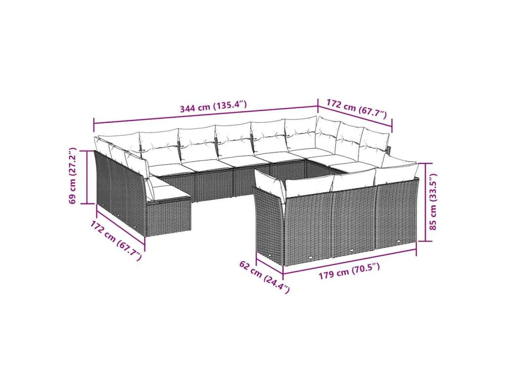 Tato zahradní sedací souprava je dokonalým doplňkem vaší zahrady, terasy nebo dvorku a poskytne vám pohodlné a příjemné místo, kde si můžete povídat s rodinou a přáteli nebo jen tak odpočívat a užívat si pobyt venku.