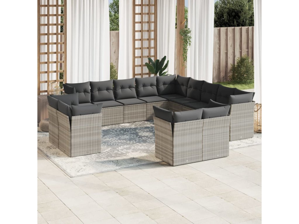 13dílná zahradní sedací souprava podušky světle šedá polyratan 3218552