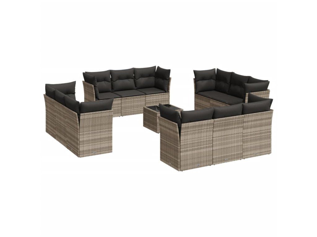 13dílná zahradní sedací souprava podušky světle šedá polyratan 3249181