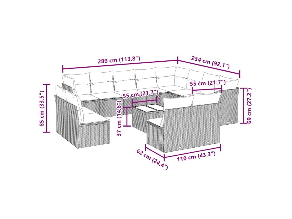Tato zahradní sedací souprava je dokonalým doplňkem vaší zahrady, terasy nebo dvorku a poskytne vám pohodlné a příjemné místo, kde si můžete povídat s rodinou a přáteli nebo jen tak odpočívat a užívat si pobyt venku.