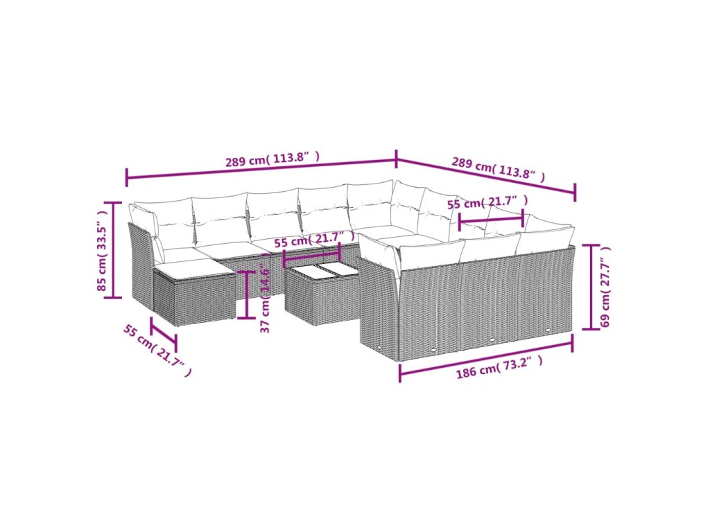 Tato zahradní sedací souprava je dokonalým doplňkem vaší zahrady, terasy nebo dvorku a poskytne vám pohodlné a příjemné místo, kde si můžete povídat s rodinou a přáteli nebo jen tak odpočívat a užívat si pobyt venku.