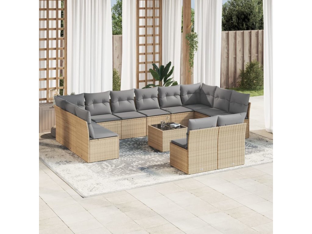 13dílná zahradní sedací souprava s poduškami béžová polyratan 3218379