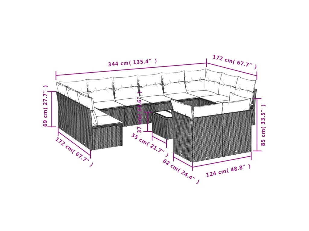 13dílná zahradní sedací souprava s poduškami béžová polyratan 3218438
