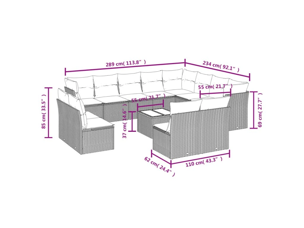 13dílná zahradní sedací souprava s poduškami béžová polyratan 3218478