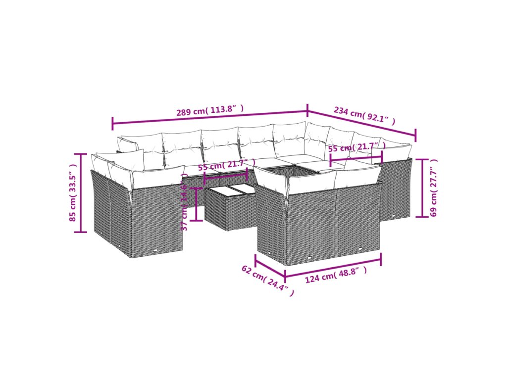 Tato zahradní sedací souprava je dokonalým doplňkem vaší zahrady, terasy nebo dvorku a poskytne vám pohodlné a příjemné místo, kde si můžete povídat s rodinou a přáteli nebo jen tak odpočívat a užívat si pobyt venku.