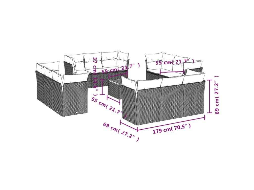 13dílná zahradní sedací souprava s poduškami béžová polyratan 3223539