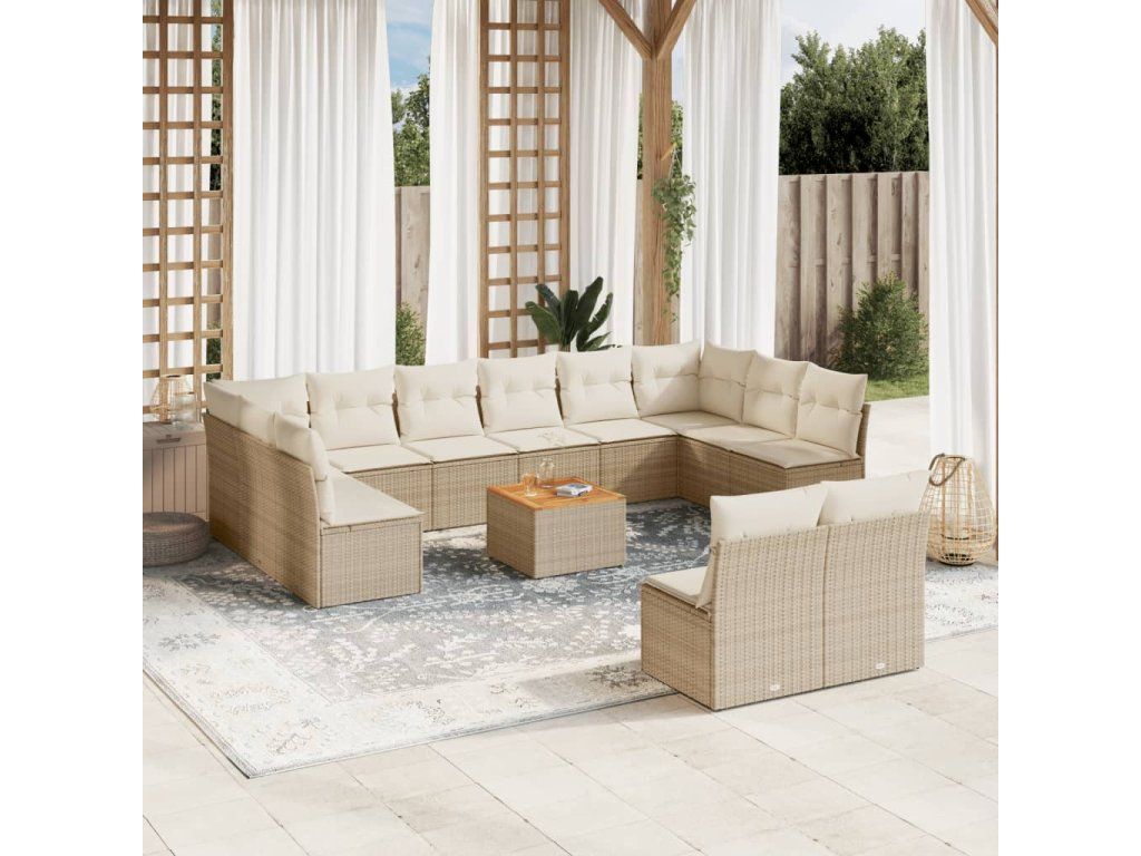 13dílná zahradní sedací souprava s poduškami béžová polyratan 3223895