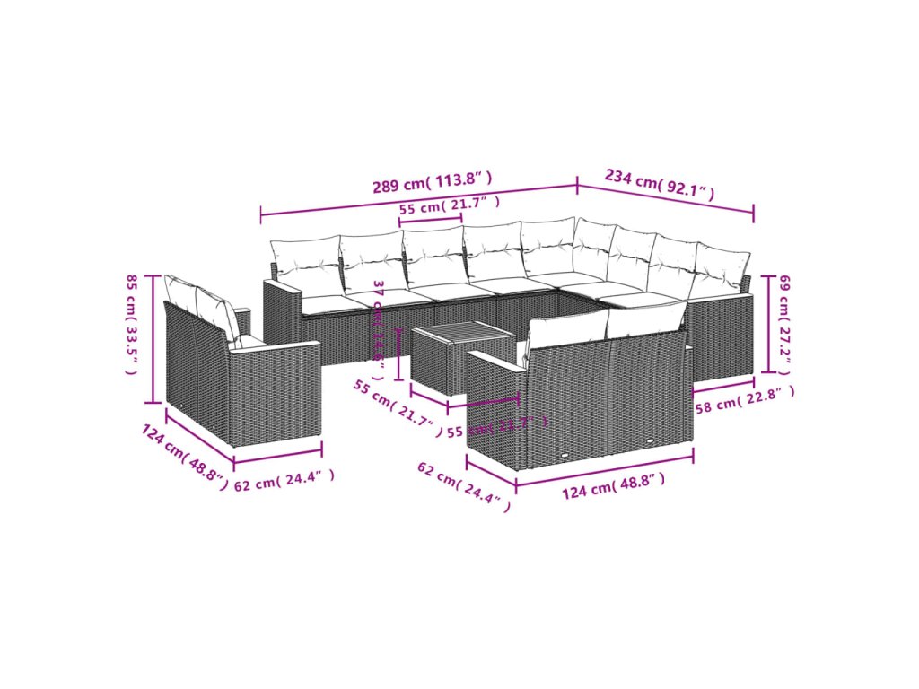 13dílná zahradní sedací souprava s poduškami béžová polyratan 3226520