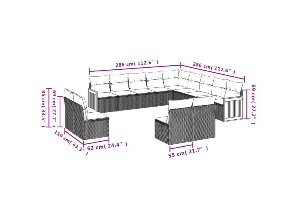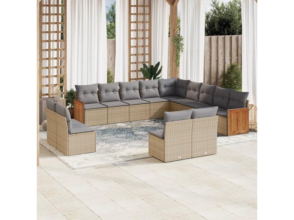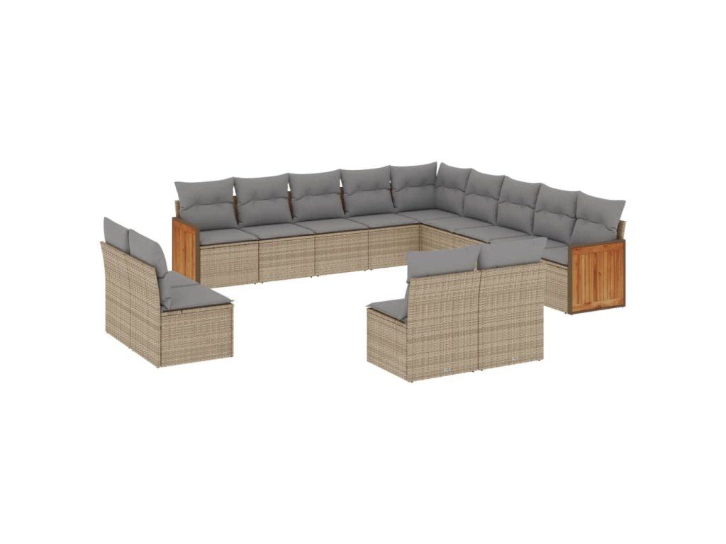 13dílná zahradní sedací souprava s poduškami béžová polyratan 3228166