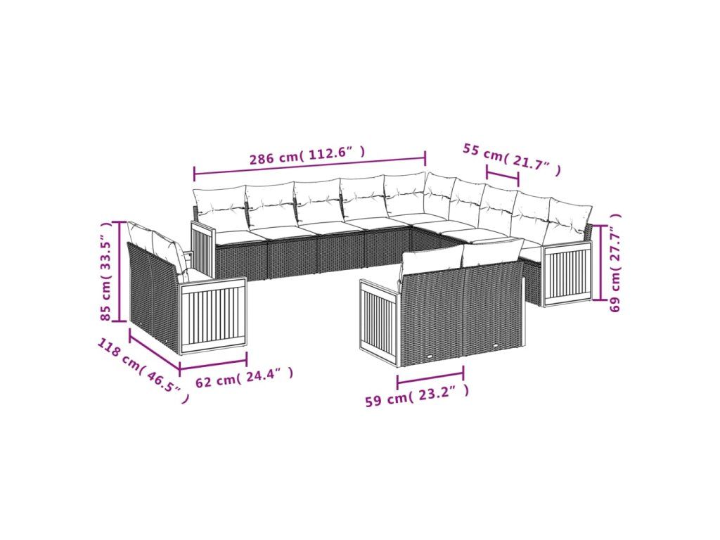 13dílná zahradní sedací souprava s poduškami béžová polyratan 3228208