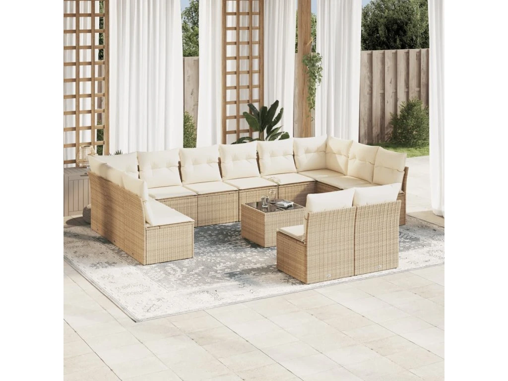13dílná zahradní sedací souprava s poduškami béžová polyratan 3250217