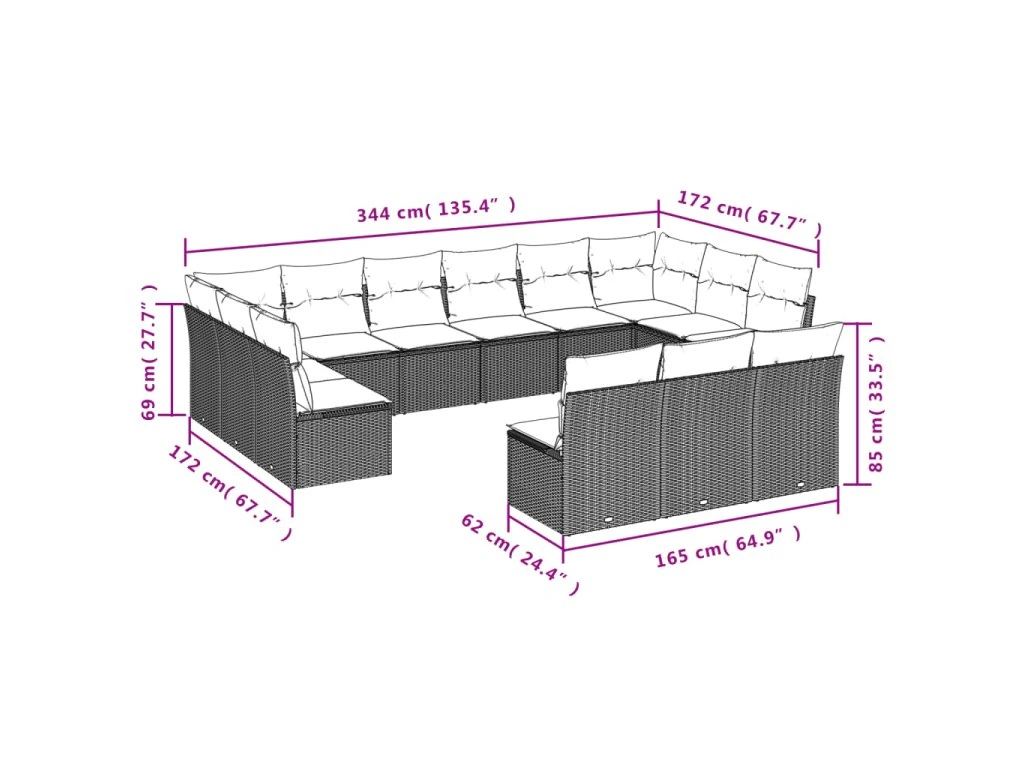 13dílná zahradní sedací souprava s poduškami béžová polyratan 3250227
