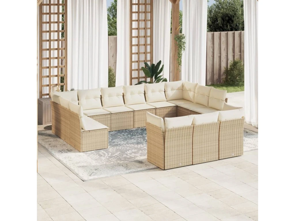 13dílná zahradní sedací souprava s poduškami béžová polyratan 3250287