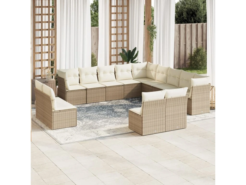13dílná zahradní sedací souprava s poduškami béžová polyratan 3250327