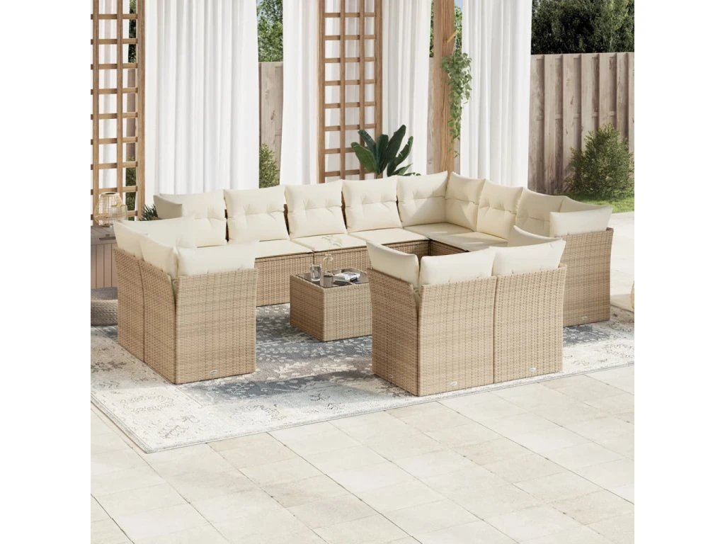 13dílná zahradní sedací souprava s poduškami béžová polyratan 3250377