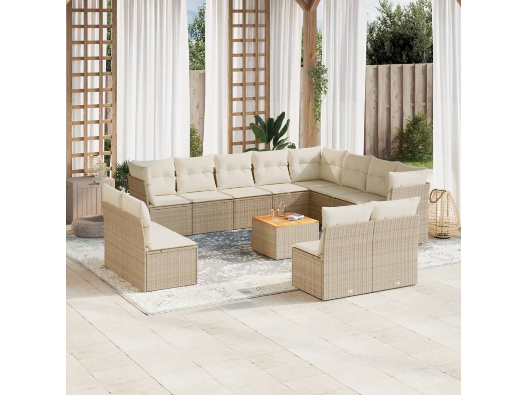 13dílná zahradní sedací souprava s poduškami béžová polyratan 3256261