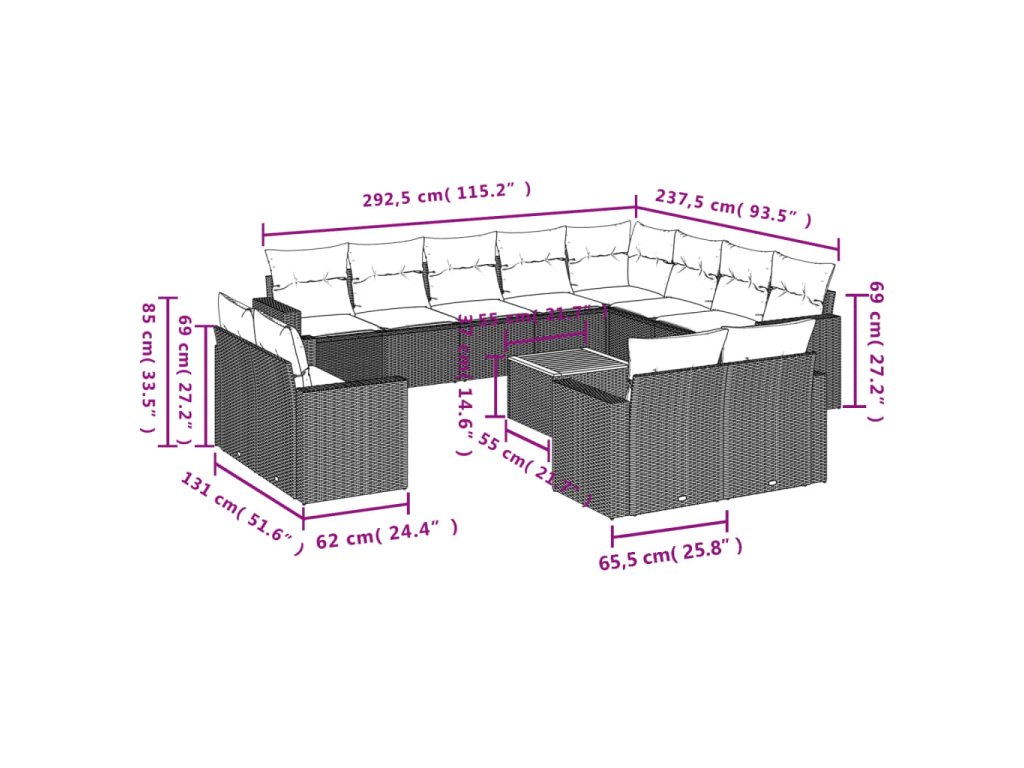 13dílná zahradní sedací souprava s poduškami béžová polyratan 3256723