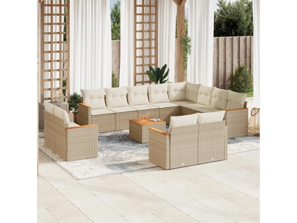 13dílná zahradní sedací souprava s poduškami béžová polyratan 3258922
