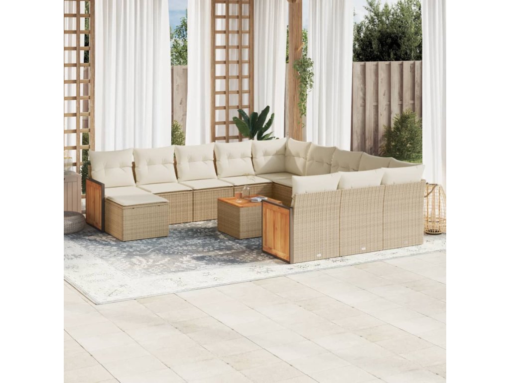 13dílná zahradní sedací souprava s poduškami béžová polyratan 3260672