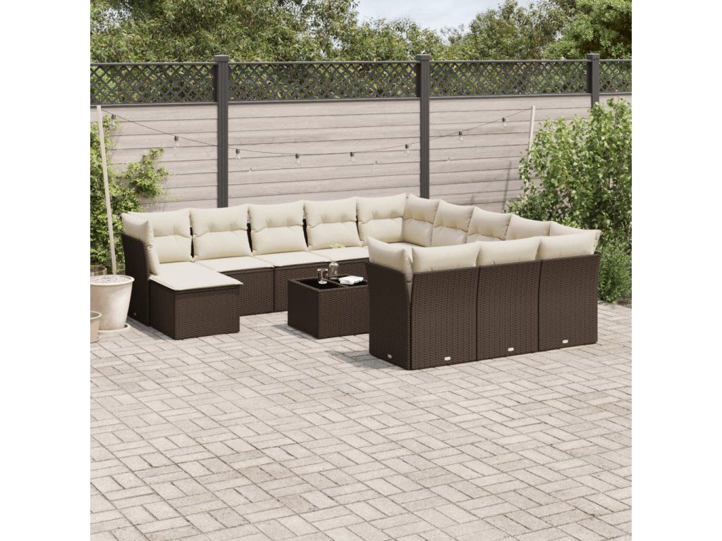 13dílná zahradní sedací souprava s poduškami hnědá polyratan 3218643