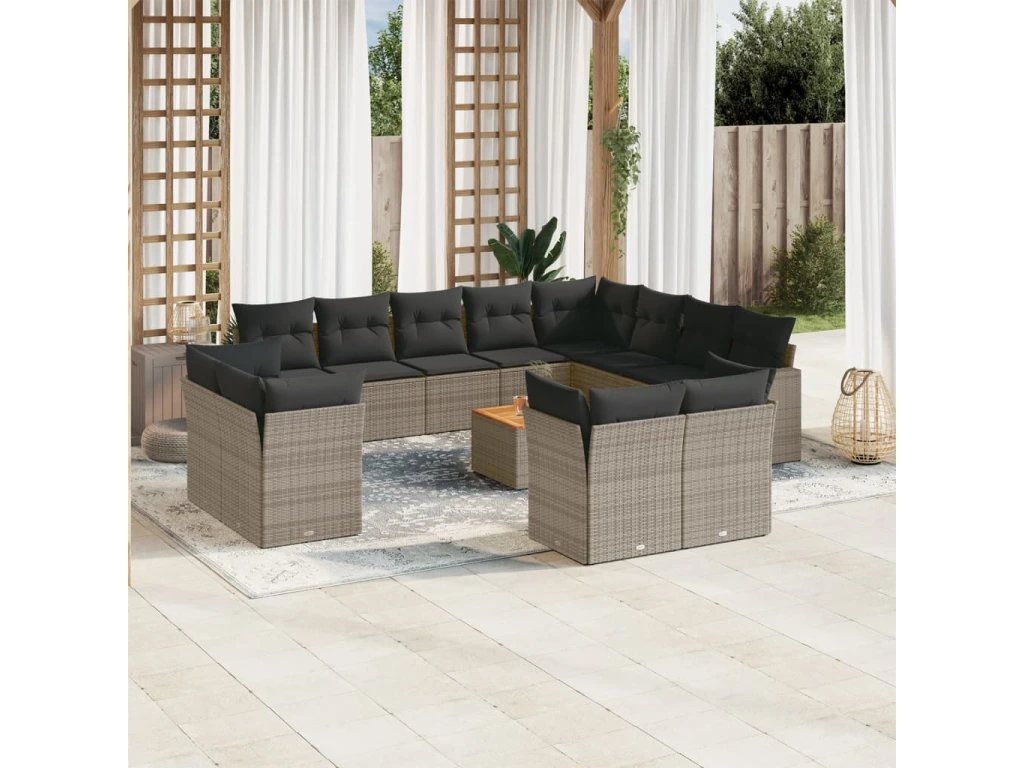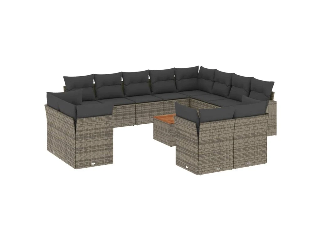 13dílná zahradní sedací souprava s poduškami šedá polyratan 3223953