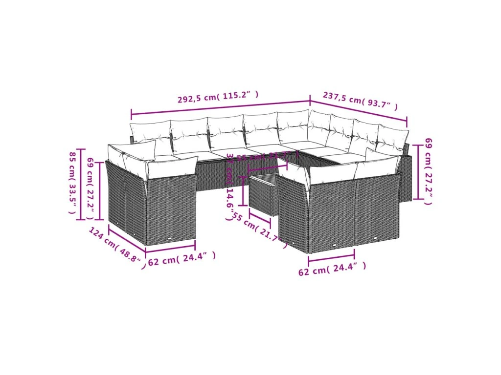Tato zahradní sedací souprava je dokonalým doplňkem vaší zahrady, terasy nebo dvorku a poskytne vám pohodlné a příjemné místo, kde si můžete povídat s rodinou a přáteli nebo jen tak odpočívat a užívat si pobyt venku.