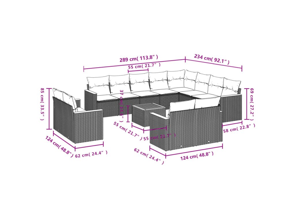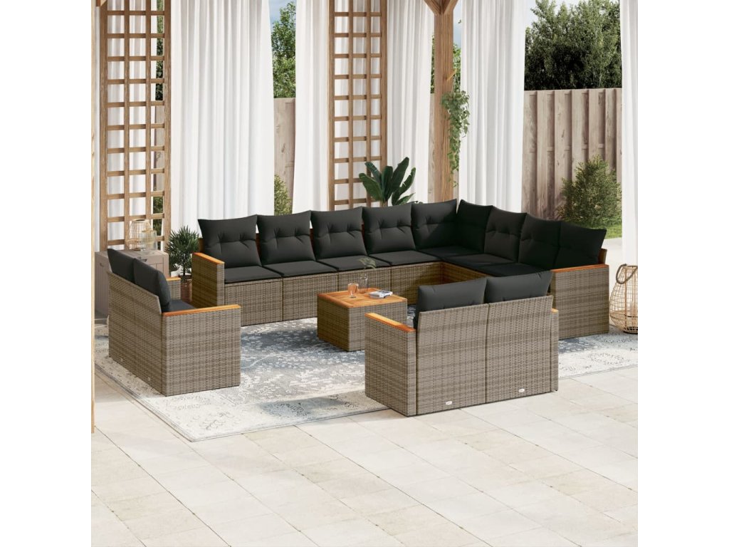 13dílná zahradní sedací souprava s poduškami šedá polyratan 3226522