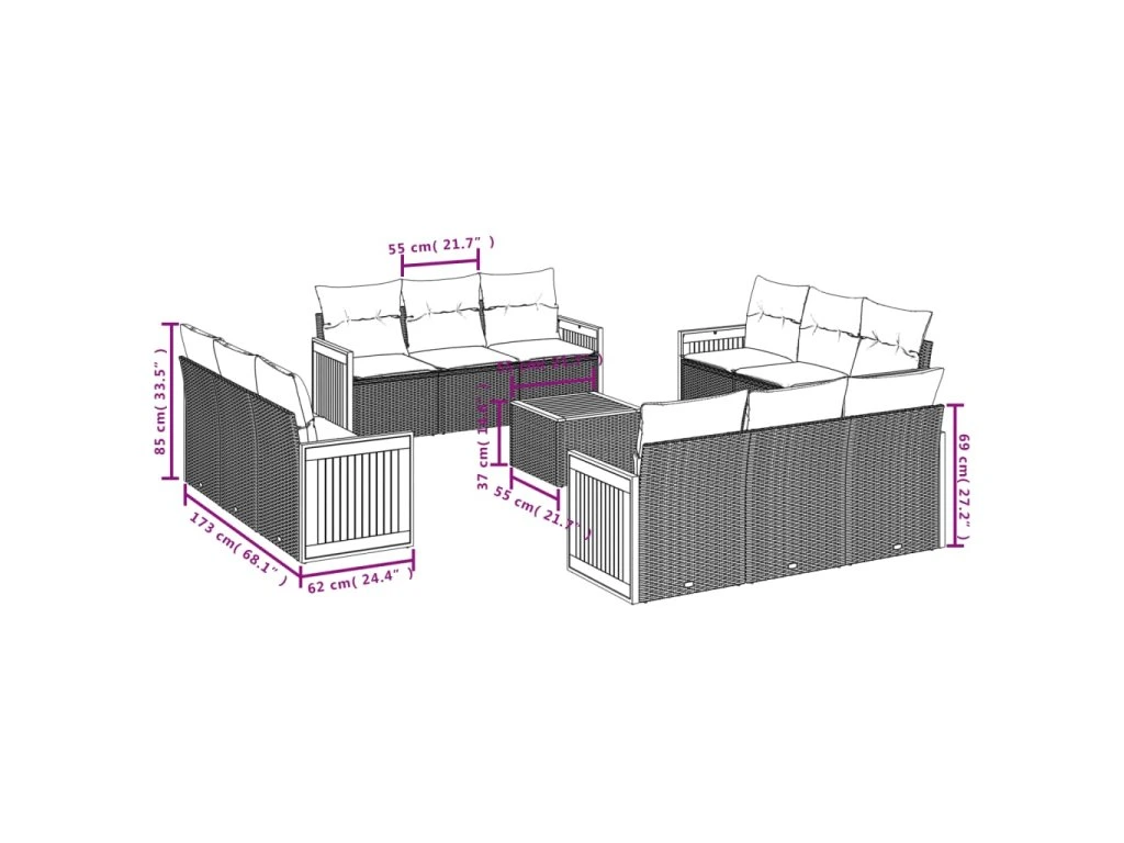 13dílná zahradní sedací souprava s poduškami šedá polyratan 3227523