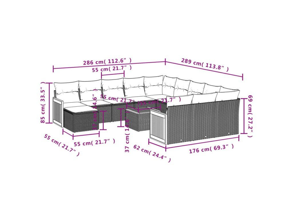 13dílná zahradní sedací souprava s poduškami šedá polyratan 3228272