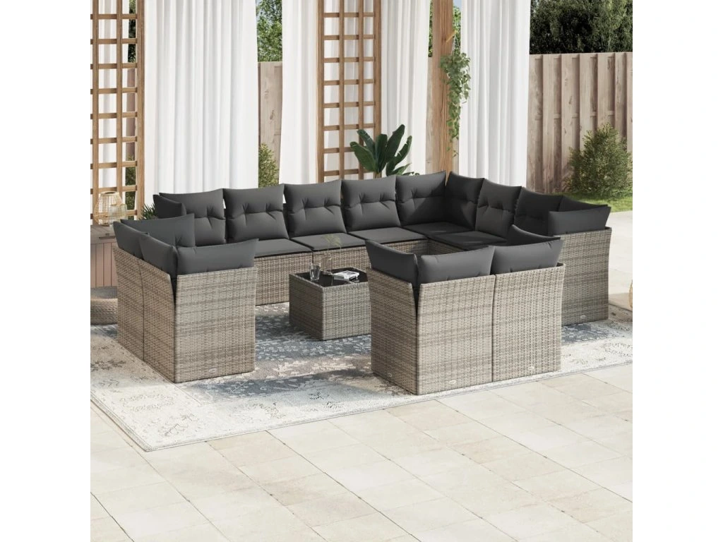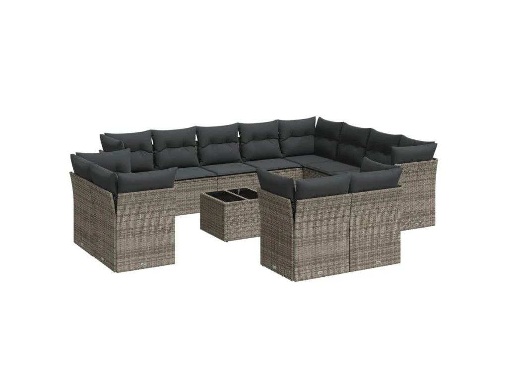 13dílná zahradní sedací souprava s poduškami šedá polyratan 3250379