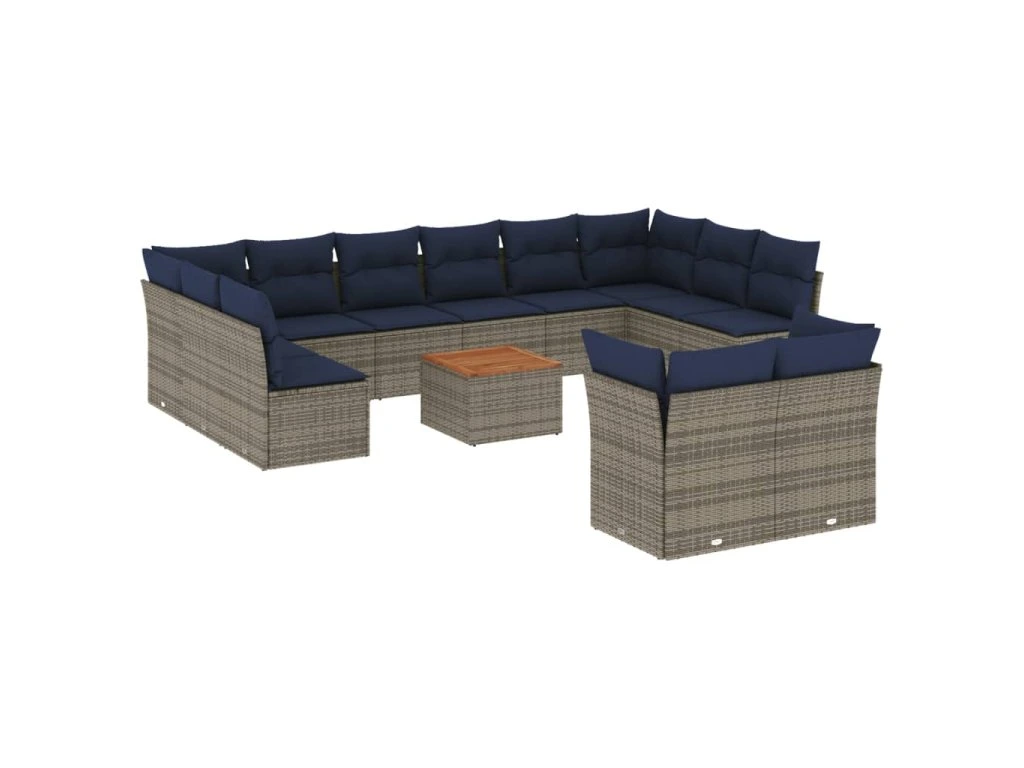 13dílná zahradní sedací souprava s poduškami šedá polyratan 3256249