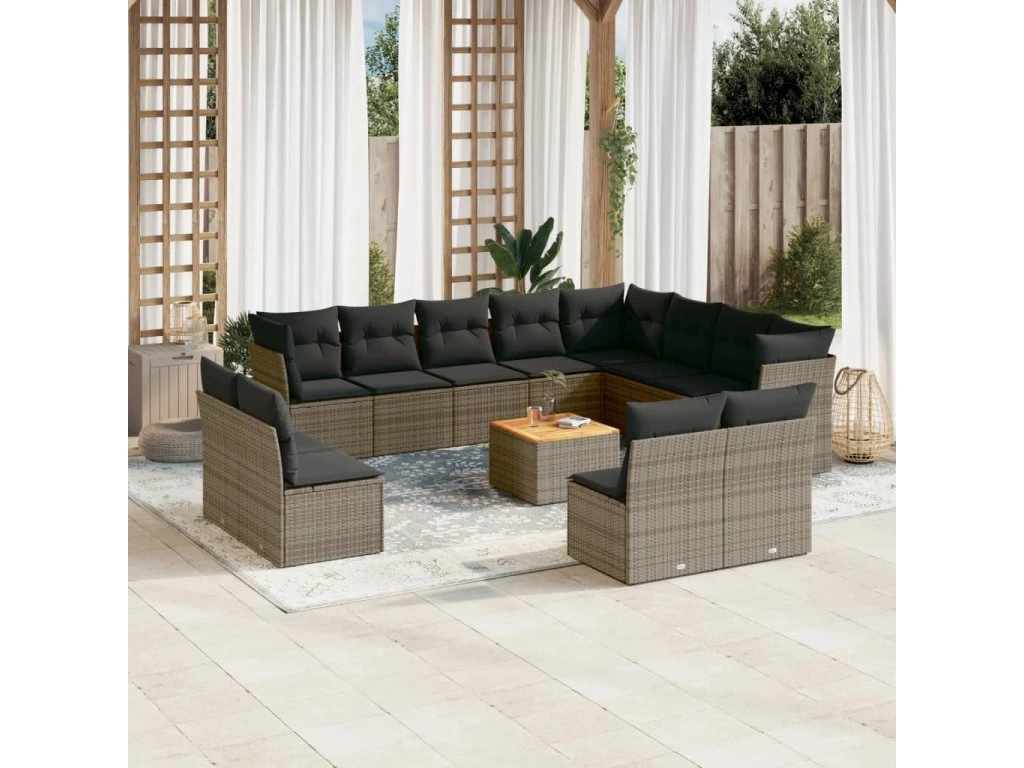 13dílná zahradní sedací souprava s poduškami šedá polyratan 3256263