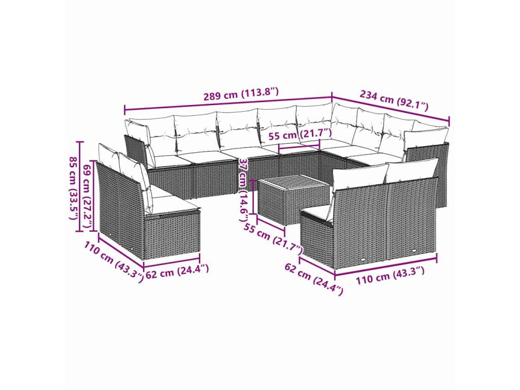 13dílná zahradní sedací souprava s poduškami šedá polyratan 3256264