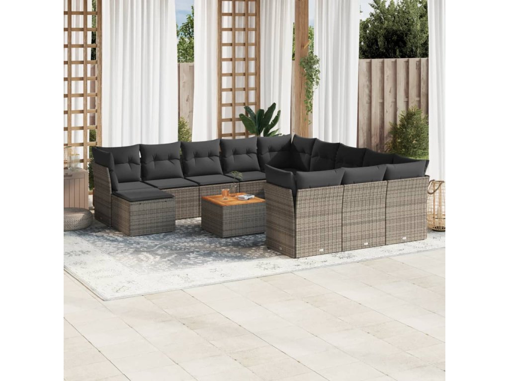 13dílná zahradní sedací souprava s poduškami šedá polyratan 3256319