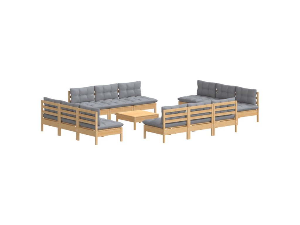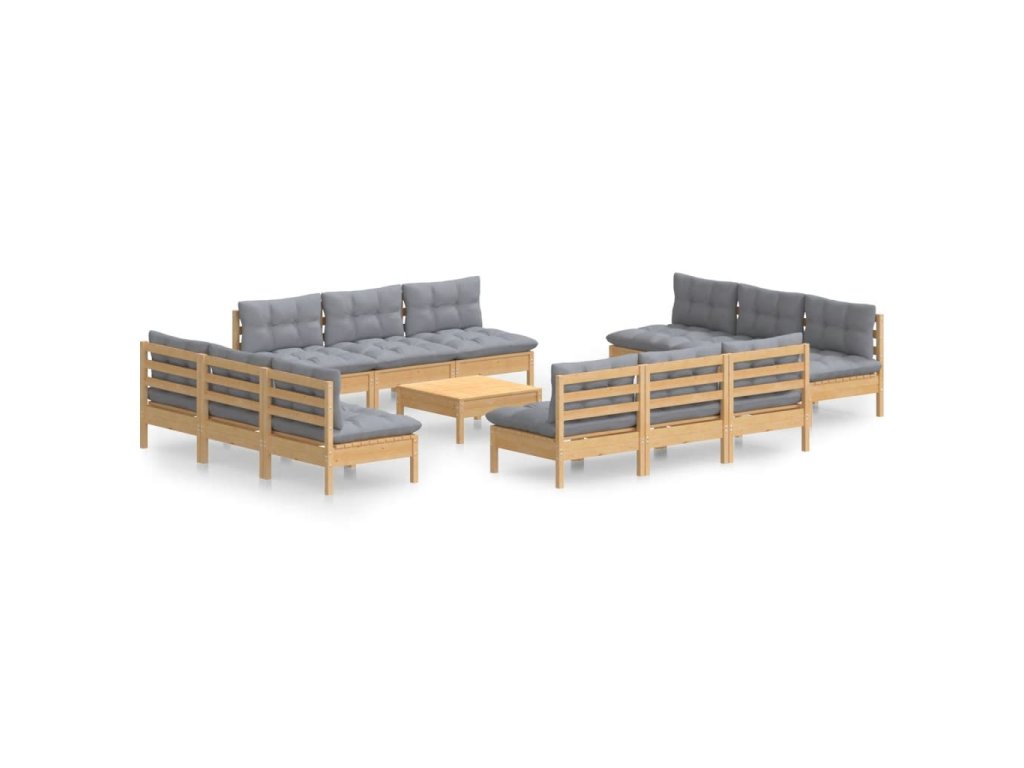 13dílná zahradní sedací souprava s šedými poduškami borovice 3096051